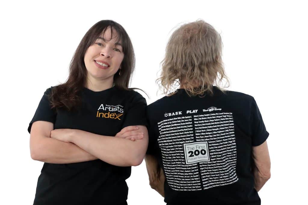 We’re releasing a special, limited-edition, commemorative t-shirt — a wearable tribute to the first 200 episodes of the South Coast Artists Index Podcast.